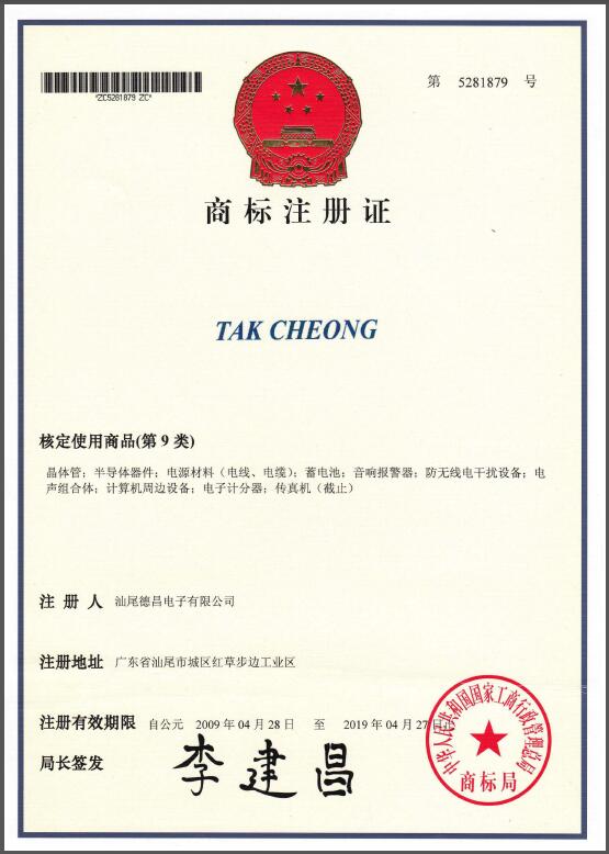 是汕尾德昌電子有限公司在中國的注冊商標之一,受法律保護,侵權必究。