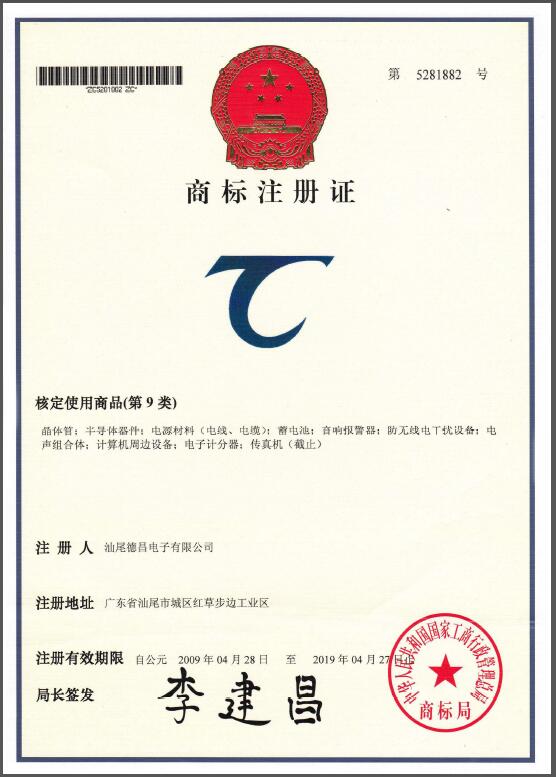 是汕尾德昌電子有限公司在中國的注冊商標之一,受法律保護,侵權必究。